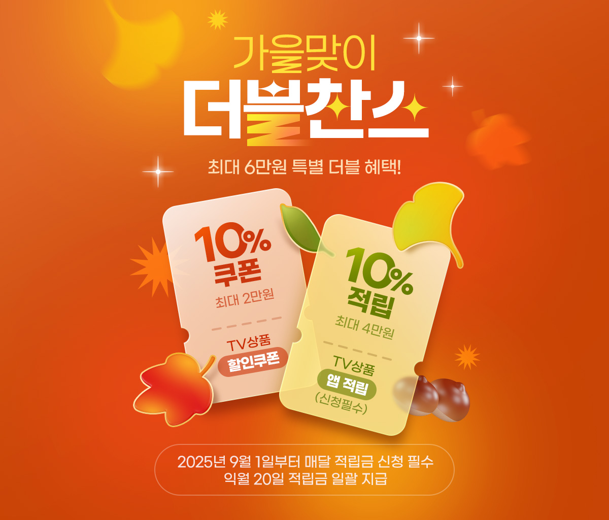 • 더블찬스 쿠폰은 9/29(월) 00:00 ~ 10/5(일) 23:59까지 발급 및 사용 가능합니다.